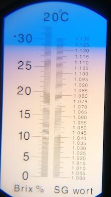 Hierbij lees ik mijn refractometer uit van een Russian Imperial Stout die ik ooit heb gebrouwen. Extreem hoog in alcohol en het eindresultaat was een bier waar geen koolzuur op kwam. Geen aanrader.