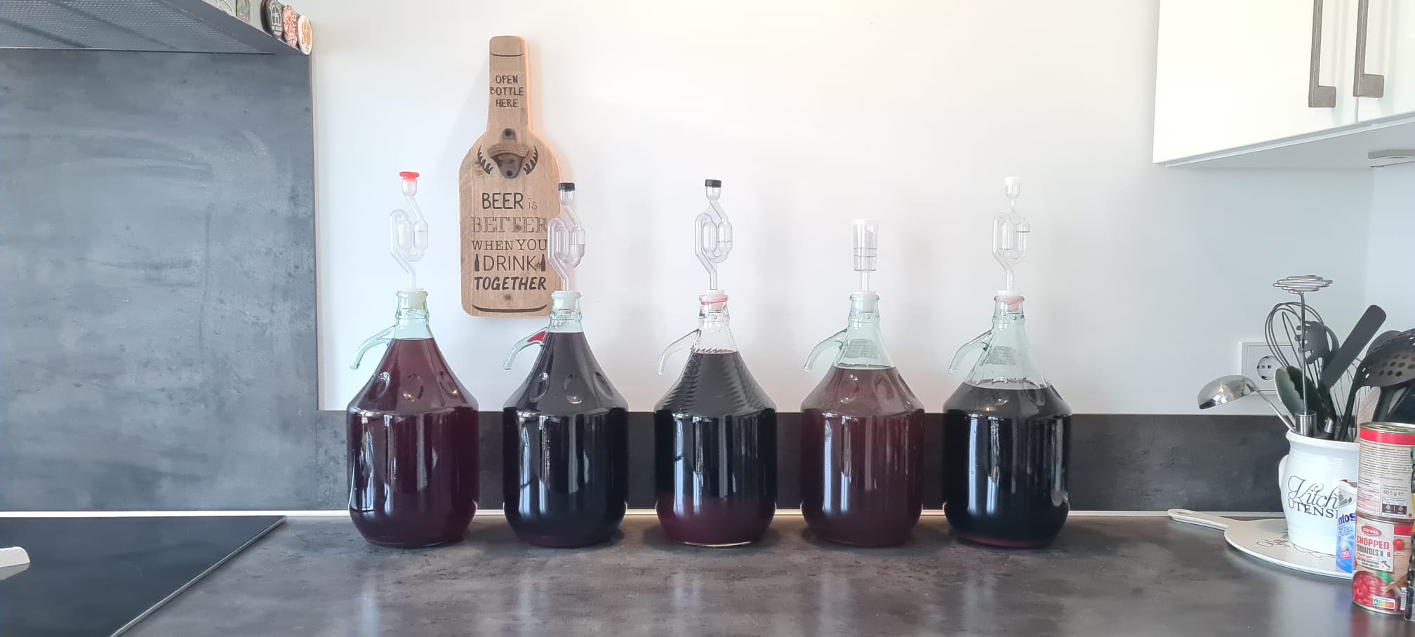 Pas op met deze hobby, wijnflessen vol met mede vermenigvuldigen zich als konijnen. Het is een zeer aanstekelijke hobby en je wilt blijven proberen. Aangezien een mede, in mijn ervaring, lekker is na 2 jaar wil je wel genoeg voorraad hebben. Bij mij staat er standaard 75 liter klaar om gebotteld te worden.